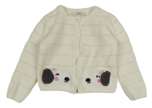 Bílý žinylkový propínací svetr s pejsky George