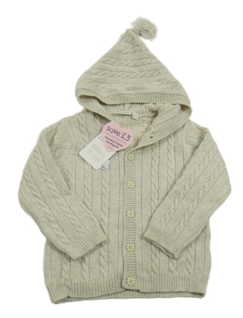 Nové - světlešedý melírovaný žebrovaný propínací svetr s kapucí Jojo Maman Bébé