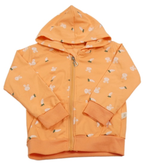 Oranžová propínací mikina se zajíčky a mrkvičkami a kapucí