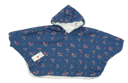 Nové - tmavomodré puntíkaté podšité pončo s růžemi a kapucí