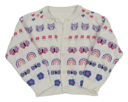 Bílý pruhovaný propínací svetr s obrázky Nutmeg