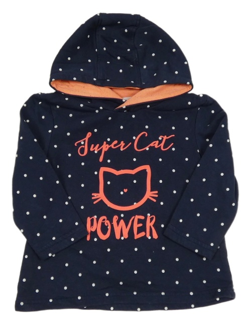 Tmavomodrá puntíkatá mikina s kočičkou a kapucí Topolino