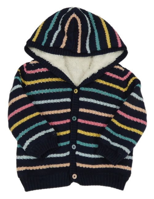 Tmavomodro-barevný pruhovaný propínací zateplený svetr s kapucí George