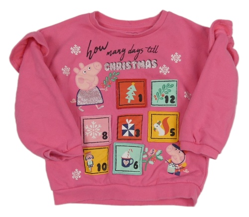 Tmavorůžová vánoční mikina s Peppa Pig a adventním kalendářem a volánky