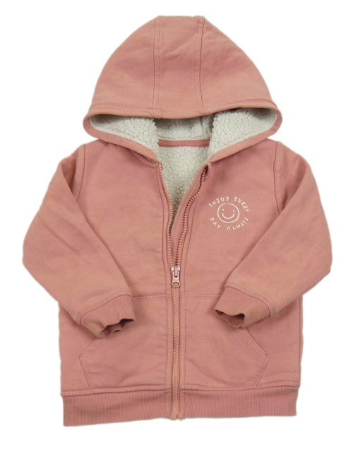 Růžová propínací zateplená mikina se smajlíkem a kapucí George