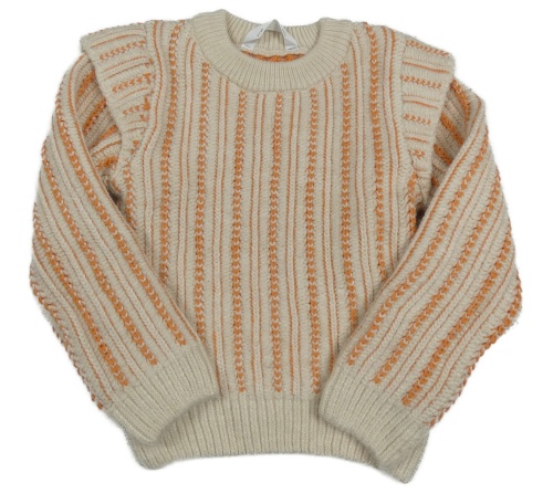 Smetanovo-oranžový pruhovaný žebrovaný svetr s volánky M&S