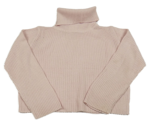 Světlerůžový žebrovaný oversize svetr s rolákem