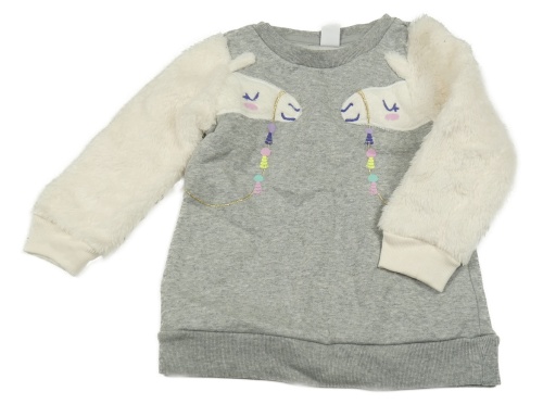 Šedá melírovaná mikina s lamami a smetanovými chlupatými rukávy GAP
