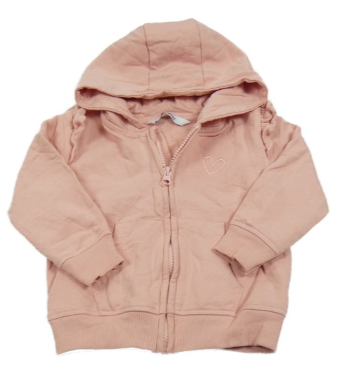 Pudrová propínací mikina se srdíčkem a volánky a kapucí everyday