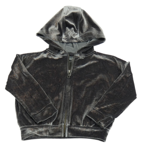 Tmavošedá sametová crop propínací mikina s kapucí Next
