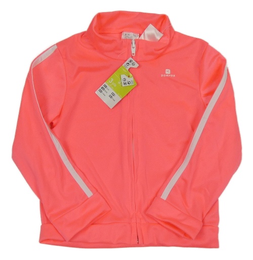 Nové - neonově korálová sportovní funkční propínací mikina s logem Domyos