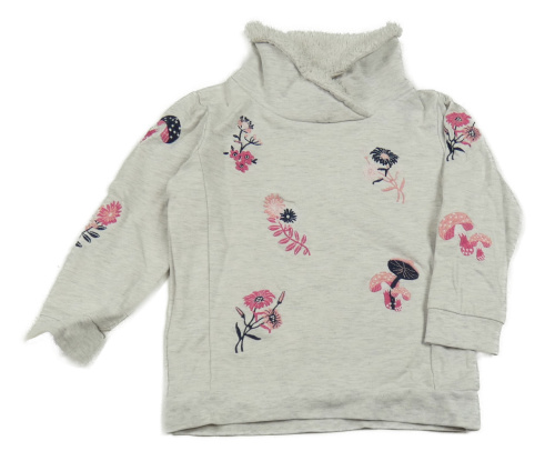 Světlešedá melírovaná mikina s kytičkami a houbičkami a stojáčkem Topolino
