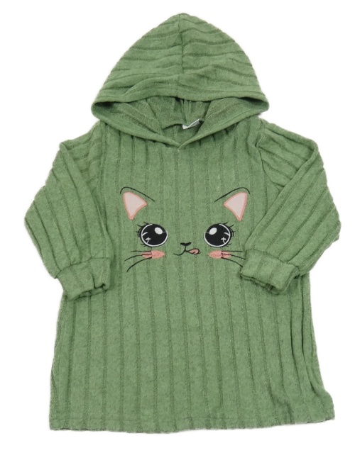 Zelená melírovaná žebrovaná úpletová tunika s kočičkou a kapucí