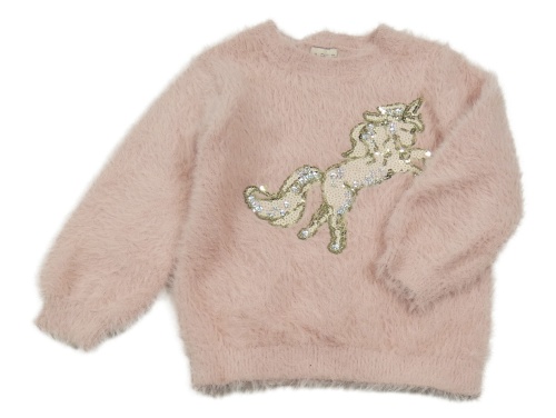 Světlerůžový chlupatý svetr s jednorožcem F&F