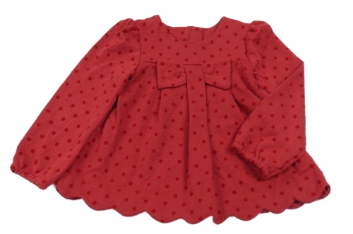 Červená puntíkatá tepláková tunika s mašlí