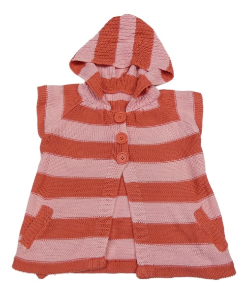 Jahodovo-růžový pruhovaný propínací svetrová vesta s kapucí M&S