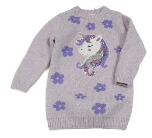 Fialové pletené šaty s kytičkami a jednorožcem Primark