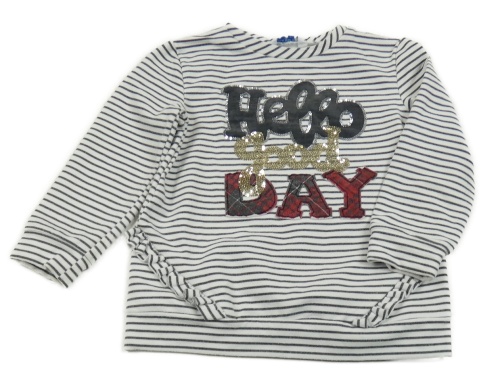 Černo-bílá pruhovaná mikina s volánky a nápisem Mayoral