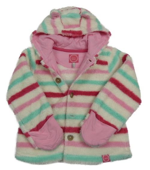 Bílo-barevná pruhovaná chlupatá propínací mikina s kapucí Joules