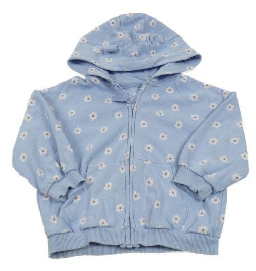 Světlemodrá propínací oversize mikina s květy a kapucí s oušky Next