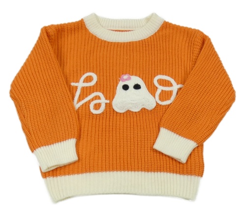 Oranžovo-smetanový žebrovaný svetr s duchem