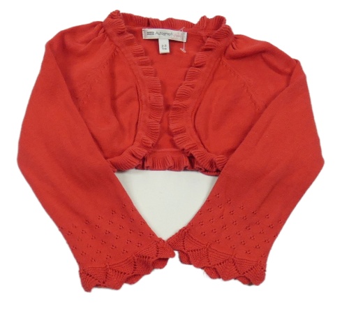 Červené propínací svetrové bolérko s volánky a vzorem M&S
