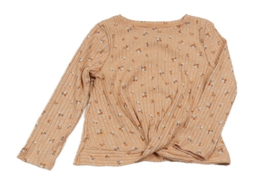 Světleoranžovo-bílé melírované žebrované mikinotriko s kytičkami a překřížením Topolino