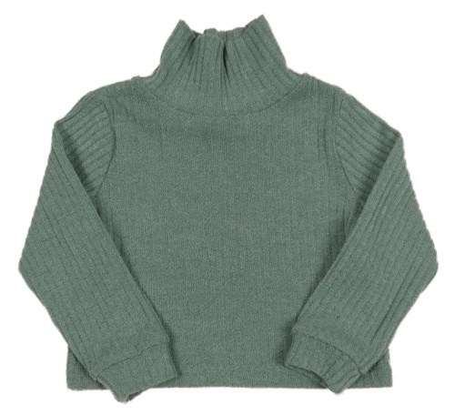 Zelenošedý žebrovaný crop svetr s rolákem PatPat