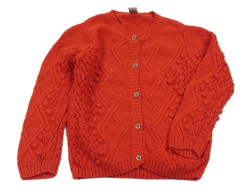 Červený vzorovaný perforovaný propínací svetr s 3D puntíky Tu