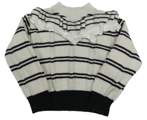 Smetanovo-černý pruhovaný žebrovaný vzorovaný úpletový crop svetr s volánky RIVER ISLAND