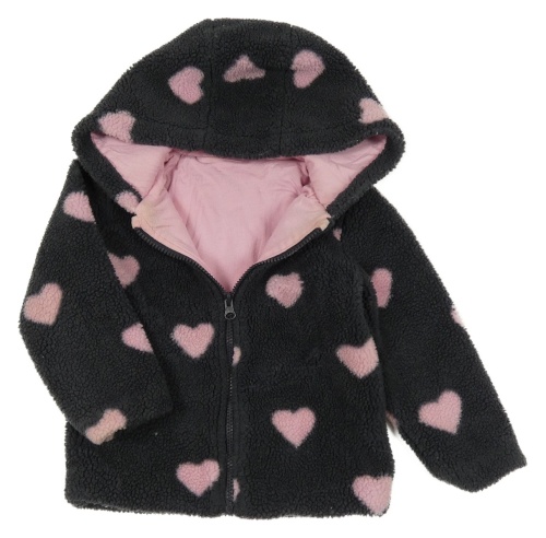 Tmavošedá huňatá propínací podšitá mikina se srdíčky a kapucí