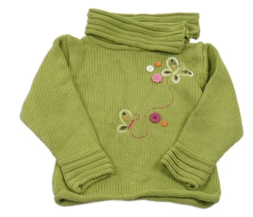 Zelený svetrový rolák s motýlky a knoflíky C&A