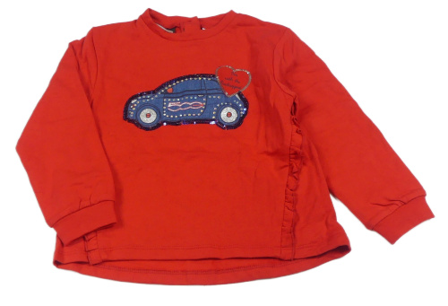 Červená mikina s autem s kamínky a volánky