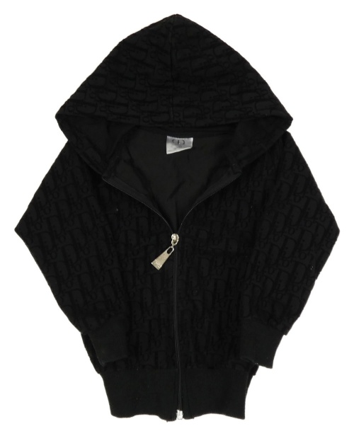 Černá sametová vzorovaná propínací mikina s kapucí