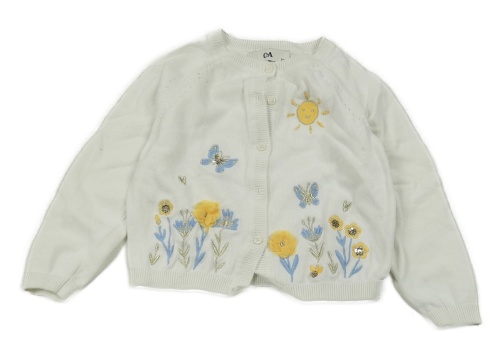 Smetanový propínací svetr s výšivkami květin a motýlů C&A