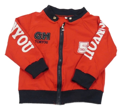 Červeno-černá propínací mikina s nápisy