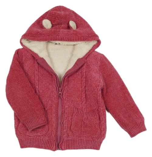 Růžový žinylkový propínací zateplený svetr s kapucí George