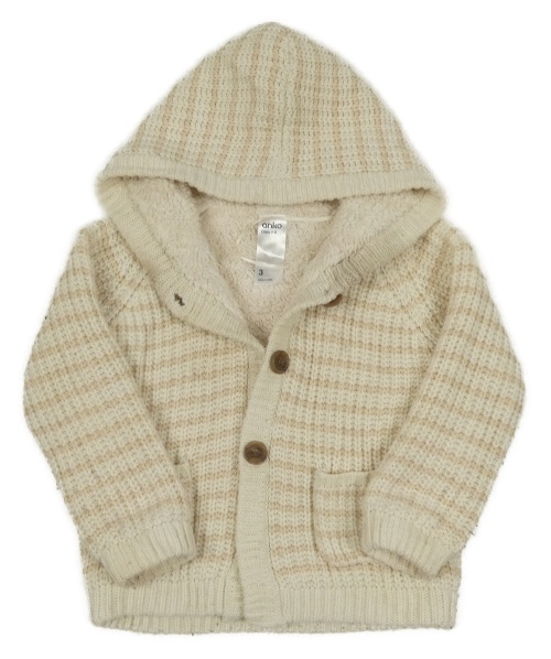 Krémovo-béžový pruhovaný propínací zateplený svetr s kapucí Anko
