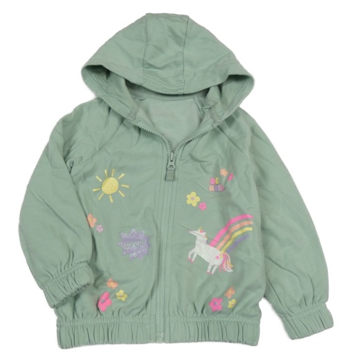 Olivová propínací mikina s jednorožcem a sluníčkem a kapucí St. Bernard