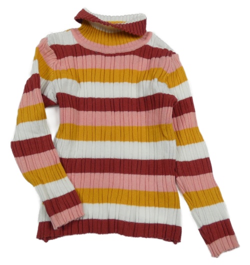 Bílo-růžovo-hořčicový pruhovaný žebrovaný svetrový rolák Nutmeg