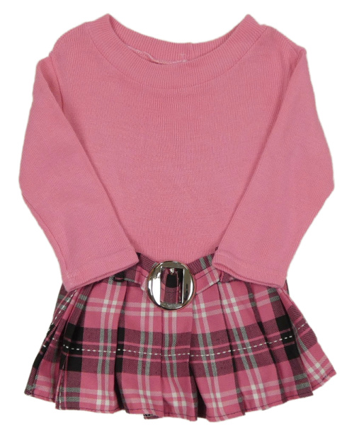 Růžová svetrová tunika s kostkovaným prvkem a páskem