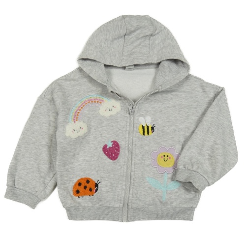 Šedá melírovaná propínací mikina s obrázky a kapucí Tu