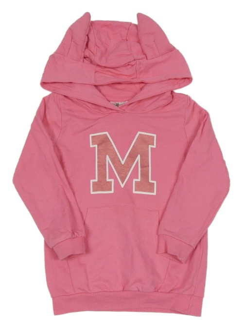 Růžová mikina s písmenkem a kapsou a kapucí s oušky so cute