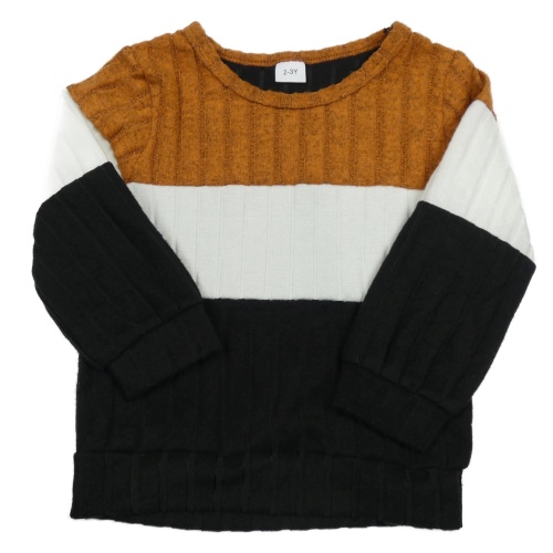 Černo-bílo-medový žebrovaný svetr