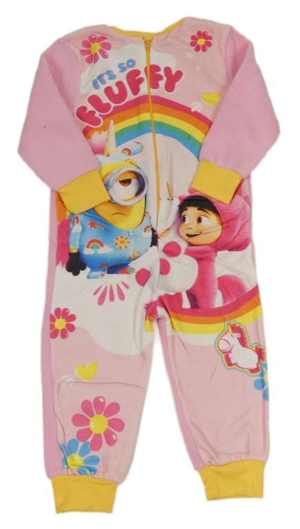 Světlerůžovo-tmavožlutý fleecový overal s Mimoněm