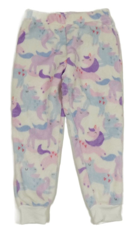 Bílé chlupaté pyžamové kalhoty s jednorožci