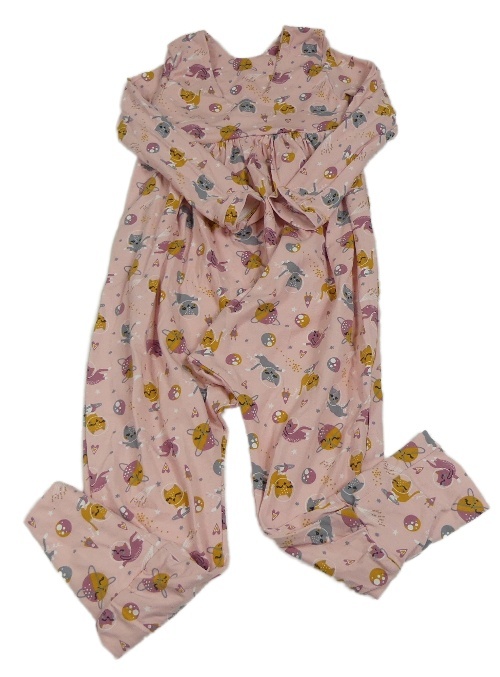 Světlerůžový pyžamový turecký overal s kočičkami
