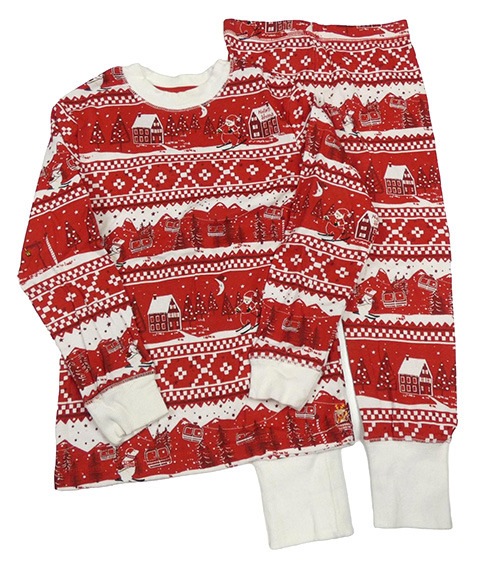Červeno-bílé vzorované vánoční pyžamo