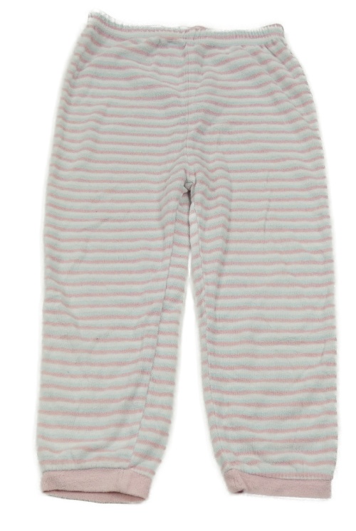 Bílo-růžovo-světlemodré pruhované sametové pyžamové kalhoty