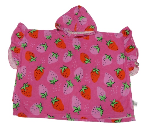 Tmavorůžové froté osuškové pončo s jahodami a kapucí Matalan